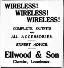 By 1900, Ellwood's was characterising itself as 'North Herefordshire's drug store.' It sold all manner of goods, some which we would still buy in a chemist's shop, but others that we would now buy elsewhere or that are controlled. The shop advertised regularly in the Leominster News,which gives us an idea of their range of stock, and local health concerns. In the 1880s and 1890s, as well as selling ginger beer powder, baking powder, and powdered egg. Despite the fact that a safe pumped water supply had been installed in Leominster 20 years before, Ellwoods was still advertising 'effervescent saline' (fizzy salt water) as a remedy against cholera in the 1880s, perhaps preying on people's fears. They also sold 'nerve pilules' in the 1880s, which contained both cocaine and nux vomica, a south American herb. Until 1916, there was hardly any legislation in the UK about the sale of dangerous drugs – it was legal for pharmacies to sell morphine, cocaine, opium and even arsenic in small amounts. The 1920 Dangerous Drugs Act started a programme of control which has increased ever since. By the 1920s, Ellwoods was advertising radios and spectacles.